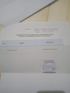 Pemberhentian Sekdes Solan Baru, Kades Diduga Abaikan Permendagri 2017