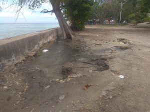 Ditambah lagi, beberapa pekan sebelumnya kondisi cuaca yang kurang bersahabat dalam siklus tahunan, menyebabkan terjangan air laut meluber hingga beberapa meter ke atas tanah yang sering dijadikan tempat beristirahat para pengendara kendaraan bermotor, disebabkan karena tanggul penahan air laut sudah rusak dan berlubang.