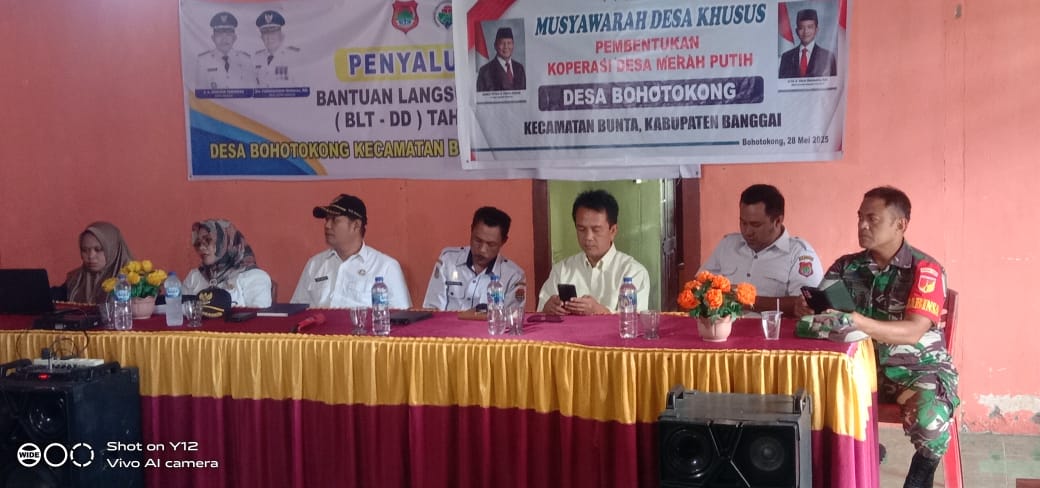 Rapat musyawarah desa khusus dengan agenda pembentukan koperasi desa merah putih Desa Bohotokong Kecamatan Bunta Kabupaten Banggai digelar Rabu (28/5) 2025.