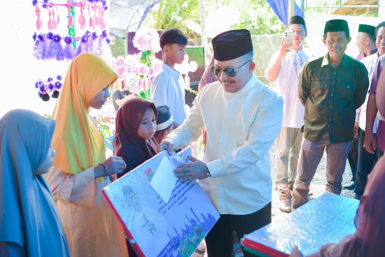 Dalam sambutannya Ketua Majelis Ta’lim Hubbul Wathan Kecamatan Toili Jaya menyampaikan, “Terimakasih kepada Bupati Banggai yang konsisten mendukung program Majelis Ta’lim yang pada kesempatan ini beliau turut menyantuni sebanyak 18 anak yatim dengan memberikan masing-masing 1 ekor kambing.” Ujarnya