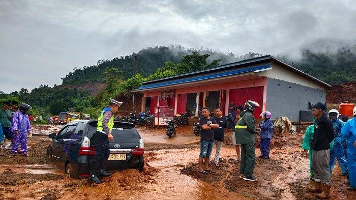 Morut, IN Akibat intensitas curah hujan yang cukup tinggi dan mengakibatkan banjir, jalan Trans Sulawesi di Desa Bungintimbe Kecamatan Petasia...